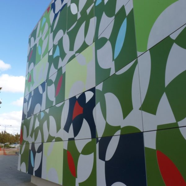Vitrapanel Custom Image panels were designed for the external facade of the school at Ellenbrook, showing a colourful and bold design capturing the lively nature of the school environment.