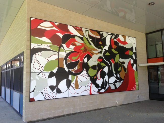 Vitrapanel Custom Image panels with a  design to show “Hapiness and Trust” the design was printed directly onto to Vitrapanel CFC and sealed with a clear V700 giving this unique extenal facade a 15 year warranty. Unique design art panels for external use. Client: Edith Cowan University, Perth, Western Australia Architect: JCY Architects and Urban Designers…